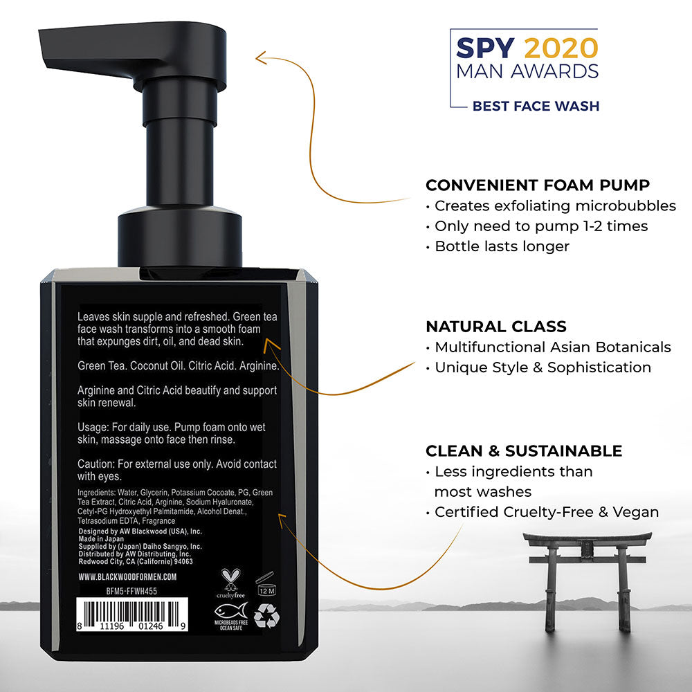 And finally, for the face we've got our BioNutrient Foaming Face Wash, made especially for men with dry or sensitive skin. This premium natural face wash includes lots of Green Tea to stimulate cell repair while fighting breakouts and blemishes. Moisturizes with Hyaluronic Acid while you cleanse, and protects against wrinkles, free radicals and pollutants with Arginine. Includes convenient pump for one-touch dispensing with less waste. Winner of the 2020 SPY Man Award for Best Face Wash.